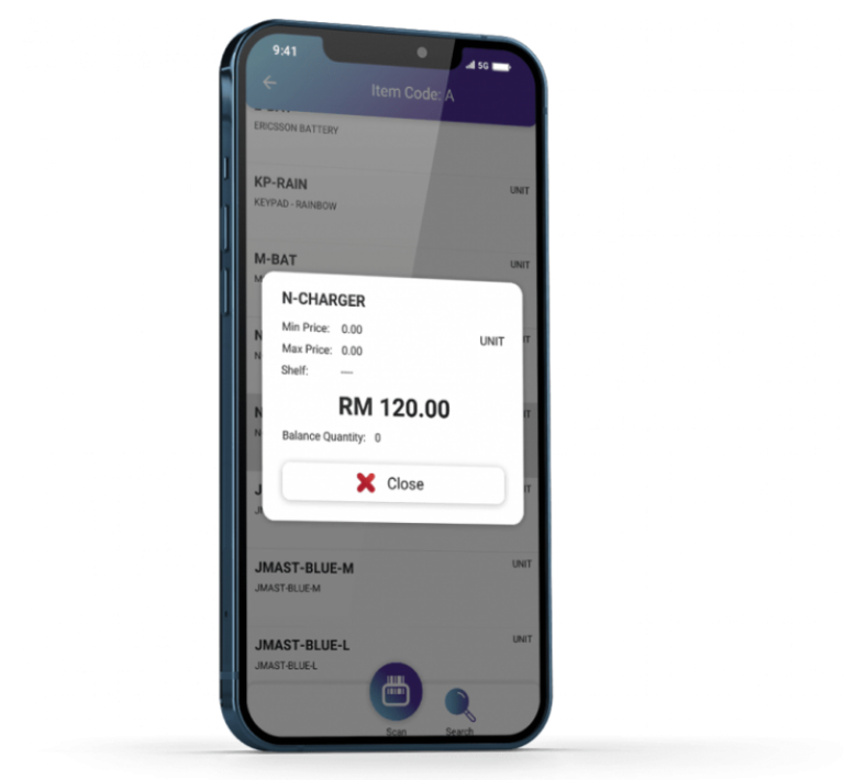 Scan a barcode or type in the search bar to find an item’s price. The price checker feature makes it easier for sales agents who are not in the office to check the unit price of each stock item. This will make it easier for sales agents to verify their selling price and avoid selling the items at a loss.